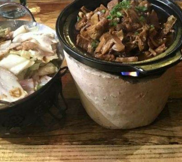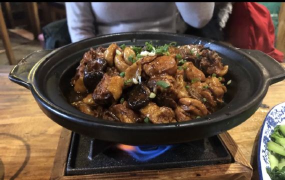 山涧白条鱼,石鱼爆蛋,庐山小白菜,干锅包菜,红烧石鸡,野木耳炒黄瓜,庐山笋衣烧肉,口水排骨,红烧鸭,庐山小土豆烧肉,庐山石鸡,庐山石鸡,庐山石耳,石鱼炒蛋,笋干红烧肉,大刀牛肉,干㶽花菜,笋衣烧肉