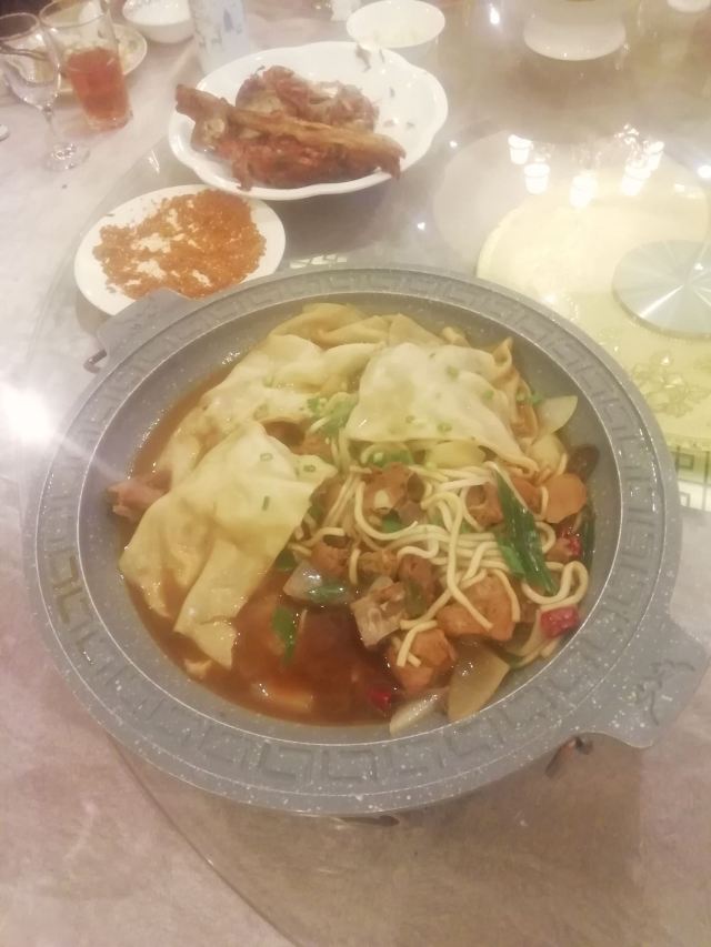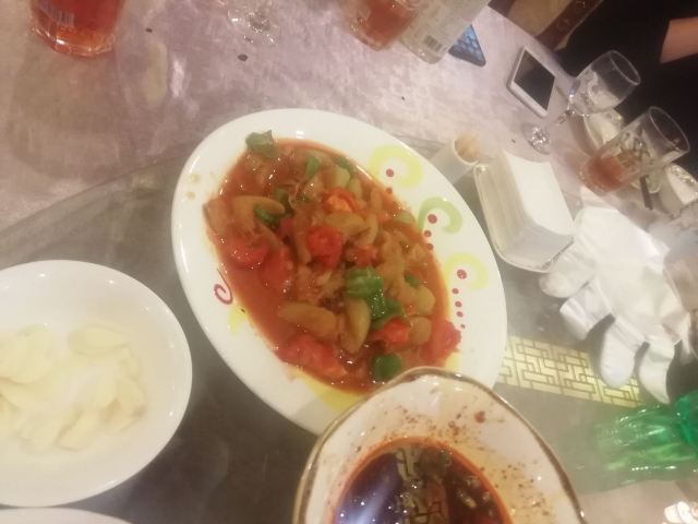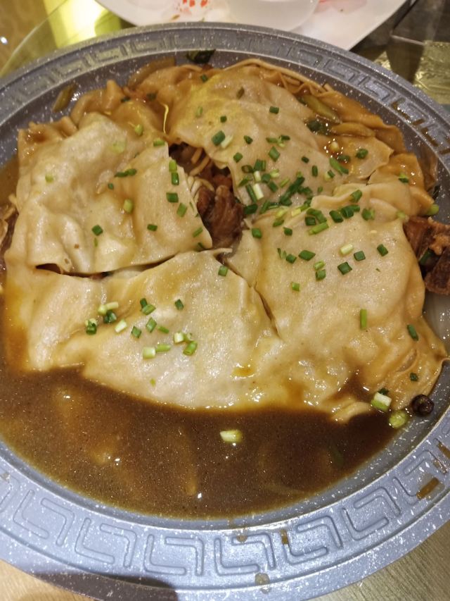 QI XING LOU GUO MU KAO QUAN YANG【位置】就在市中心,离反弹琵琶很近,门面大,好找。就是停大巴不方便,要继续往前300米,才有大停车场,但是可以到收银台报销停车费。 【服务】从嘉峪关出发就开始订菜单,刘mm很耐心地给我解释菜单,帮我调配20人的晚餐。从一楼就开始有接待,一直到三楼。每位服务员都主动热情。不会因为我们不是她负责的区域,而不主动指路。 二楼主要用于婚宴或大型包场,散客一般都上三楼。 【口味】 -烤全羊:至少提前2.5小时预定。很有仪式感,先介绍,然后请客人下第一刀,下刀的时候还会说祝福的话,很温馨。肉也很香,说是十来斤,实际上我们20个人都没吃完。 -芝麻菠菜、酱萝卜:非常爽口,一上就空。 -土鸡排骨焖饼:因为有人不吃羊肉(实际上吃了也觉得很好吃啊),所以特地点了这个焖饼,饼子很有嚼劲,带上了肉汁,非常美味。 -茄辣西:自从九年前第一次听说并吃到,再也不会忘记这个直白又好玩的名字。这样热的天气,番茄酸酸得非常开胃,青椒补充VC绝对一流,茄子链接两者,三种蔬菜奇妙地组合也一起,是大西北的创新。 -羊杂汤:别的不说,就说号称从不吃羊肉、不吃内脏的小伙伴,在我的撺掇下,勉强喝了一口,然后一碗两碗三碗没停下来,就知道多好吃了吧。 还有好多菜,都没拍照,反正吃得连蔬菜都吃不下了。 【价格】虽然这家比本来要订的另外一家烤全羊贵了两百一只,但是配菜多,服务好。 【小建议】像我们的食量,其实西北1.5份菜分两桌就足够了,每桌一份太多了,有点浪费,于心不忍。