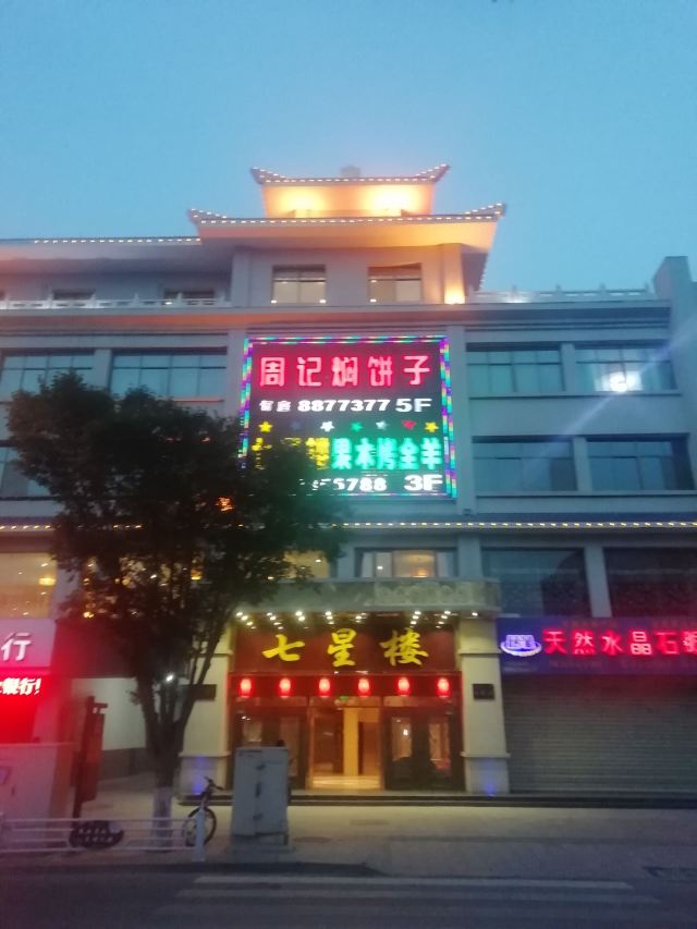 七星楼酒店是位于敦煌市中心繁华地段的特色餐饮酒楼。酒楼特别推出的果木烤全羊、手抓羊肉、红焖羊羔肉、焖饼子、烤包子等地方风味小吃,因选料精、做工细而得到了大家的广泛认可。 为满足不同客人的需求,本洒楼特别推出一人也可享用的特色风味套餐。也有适合10人以上享用的烤全羊宴、丝路夜宴等标准套餐。酒楼环境高雅,菜品可口。 敦煌美食之旅,从七星楼开始。