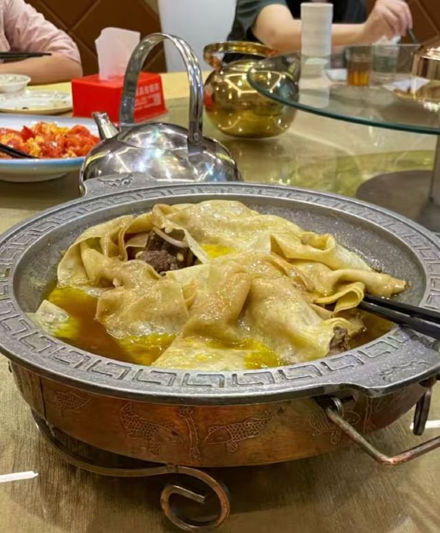 bluecrane【位置】就在市中心,离反弹琵琶很近,门面大,好找。就是停大巴不方便,要继续往前300米,才有大停车场,但是可以到收银台报销停车费。 【服务】从嘉峪关出发就开始订菜单,刘mm很耐心地给我解释菜单,帮我调配20人的晚餐。从一楼就开始有接待,一直到三楼。每位服务员都主动热情。不会因为我们不是她负责的区域,而不主动指路。 二楼主要用于婚宴或大型包场,散客一般都上三楼。 【口味】 -烤全羊:至少提前2.5小时预定。很有仪式感,先介绍,然后请客人下第一刀,下刀的时候还会说祝福的话,很温馨。肉也很香,说是十来斤,实际上我们20个人都没吃完。 -芝麻菠菜、酱萝卜:非常爽口,一上就空。 -土鸡排骨焖饼:因为有人不吃羊肉(实际上吃了也觉得很好吃啊),所以特地点了这个焖饼,饼子很有嚼劲,带上了肉汁,非常美味。 -茄辣西:自从九年前第一次听说并吃到,再也不会忘记这个直白又好玩的名字。这样热的天气,番茄酸酸得非常开胃,青椒补充VC绝对一流,茄子链接两者,三种蔬菜奇妙地组合也一起,是大西北的创新。 -羊杂汤:别的不说,就说号称从不吃羊肉、不吃内脏的小伙伴,在我的撺掇下,勉强喝了一口,然后一碗两碗三碗没停下来,就知道多好吃了吧。 还有好多菜,都没拍照,反正吃得连蔬菜都吃不下了。 【价格】虽然这家比本来要订的另外一家烤全羊贵了两百一只,但是配菜多,服务好。 【小建议】像我们的食量,其实西北1.5份菜分两桌就足够了,每桌一份太多了,有点浪费,于心不忍。