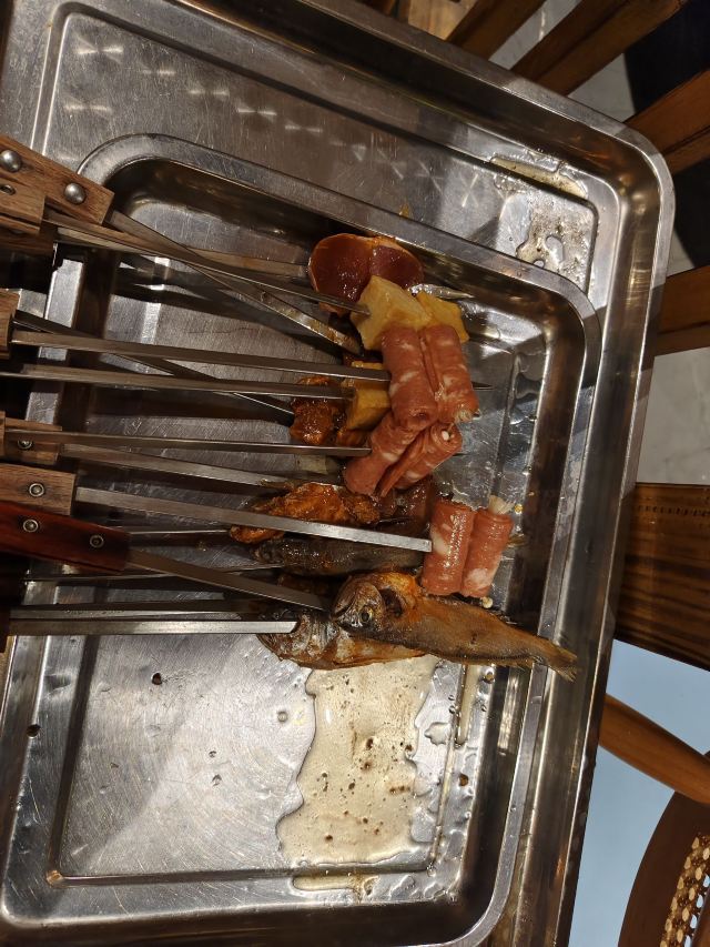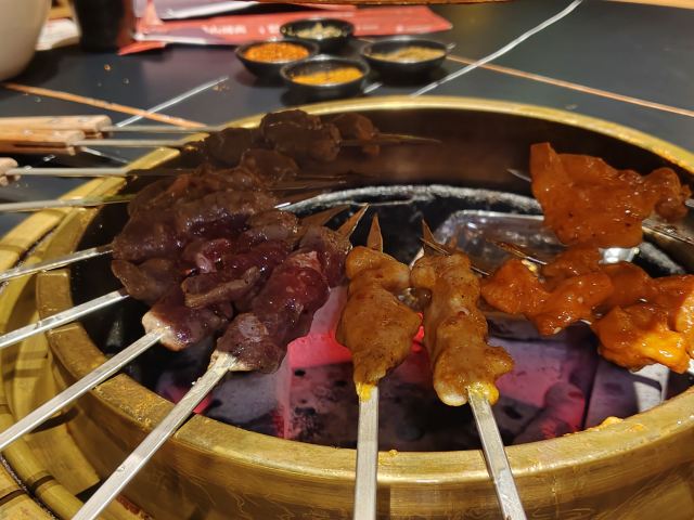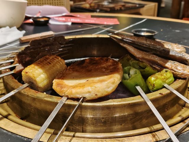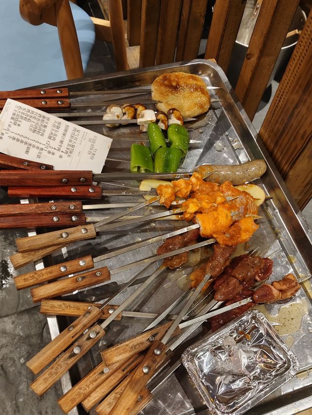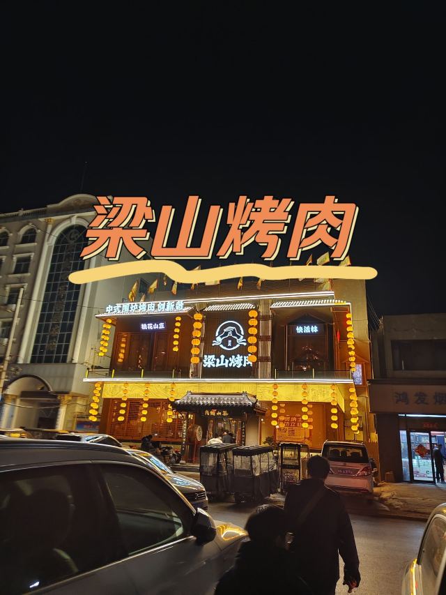 大杜杜略地攻城志已酬,陈辞欲伴赤松游。 时人苦把功名恋,只怕功名不到头。 ——《水浒传》 开封游最后一餐选择了“吃烤肉,上梁山“,体验一把“大口吃肉,大碗喝酒”的快意江湖!|梁山烤肉(东京总店)^,位于河南省开封市龙亭区万胜路1号,经营中式围炉烤肉,进入梁山烤肉的一瞬间,大王椅、兵器架、“义”字旗、还有桃源般的场景等等,一桌一椅都书写着水浒里的故事,处处都充满着浓浓的江湖气息,初到便有一种又见水浒、梦回梁山的即视感!所到之处梁山风味十足,仿佛置身于水浒故事之中。 团购了158元的3人套餐,有单点了一些串串,|四月龄春羔羊肉^|进口澳洲牛肉^|传统奥尔良烤翅^|芝士黄薯^|武大郎烧饼^|马步鱼^|秘制小羊排^弥漫的炭火味配上硕大的肉串,豪气顿生、口舌生津,坐下就想先畅快撸上几串。 生活既要忙碌紧绷,也要适当恣意放纵,不如选个闲暇时分,体验一次江湖豪情。这里值得推荐!