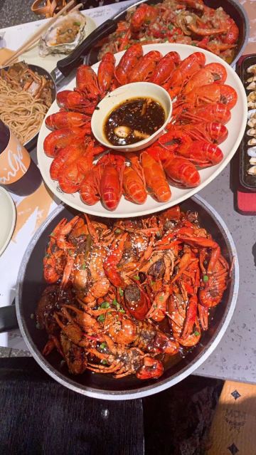 生煎牛排,三文鱼,冰淇淋,甜点,基围虾,刺身,提拉米苏蛋糕,烤菠萝,生煎羊排,香辣炒大虾,湖北酱鸭,烧鳝鱼,湖北三蒸,布朗尼,琥珀桃仁明虾球,蟹子青瓜寿司,明炉叉烧盖饭配青菜,蒜蓉粉丝蒸扇贝