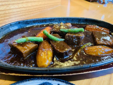 在茶屋街上的一家小店,随便找了一家吃午餐的,去的时候已经下午2点多了,店里客人不多,小小的店面却非常干净整洁,我们坐在吧台的位置,点了2份套餐,其中沙拉味道很赞,酸酸甜甜的非常好吃,蛋包饭的味道也不错,里面的饭是炒过的,还有一份飞弹牛,味道也不错