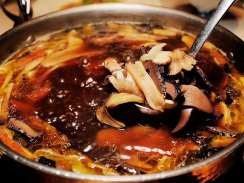 这几天就和野生菌干上了,不是在家里自己做,就是跑到这样的菌菇专门店吃饭。算是这个类别的老店, 这个季节正好事新鲜蘑菇的最当季,请客这类就比较有特色。松茸、牛肝菌、鸡纵菌一锅烩,最后配点牛肉就喂饱,不管如何,松茸菌菇包是收尾的最佳。