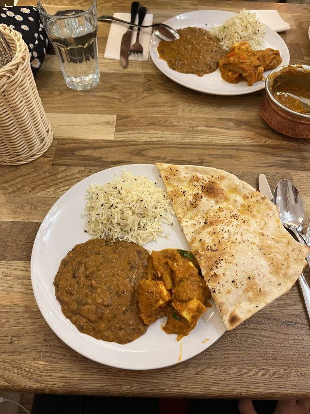 这个地方氛围很好,工作人员真的很亲切。我强烈推荐带有然种子的米饭(jeera pulao)。我们吃了马塔帕内尔,达尔马卡尼和大蒜南。我推荐所有这些。他们菜不使用肉。这里有素食和素食的菜肴,即使你不是素食主义者或素食主义者,你会喜欢的。这是我们印度朋友的生日晚餐,她也喜欢一切。