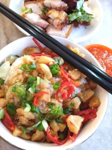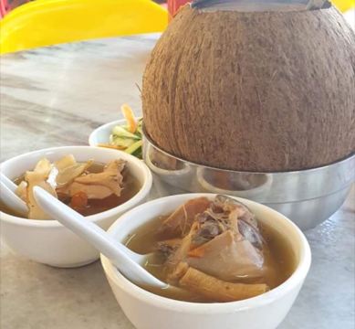 马国朋友们带我来吃午餐,他们要我尝尝吉隆坡的海南鸡饭。 正记炖汤烧腊鸡饭档的老板是个海南人,他煮的鸡饭和白斩鸡很赞。叉烧和烧肉更是美味可口,好多顾客都是点鸡肉、烧肉和叉烧。 店里还卖几种炖汤,我们点了有清甜椰汁的椰子炖鸡汤。 我吃了一盘鸡饭,朋友又点了一碗猪油捞饭给我尝尝。虽然我已经吃饱了,但是敌不过香气扑鼻的猪油捞饭的诱惑,开心的吃完那碗饭。