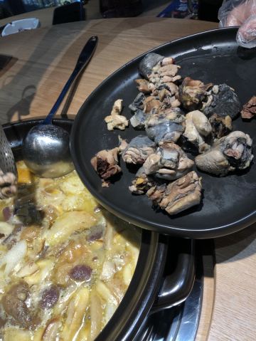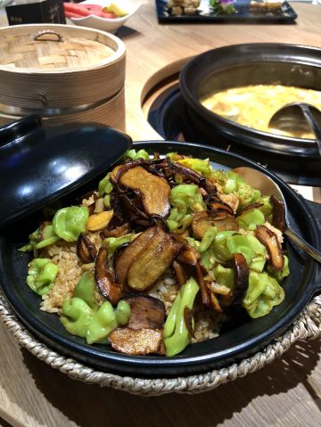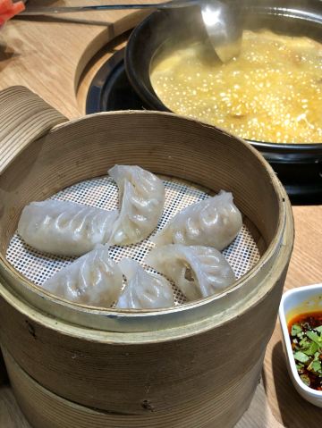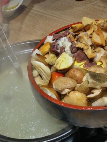 在昆明早就想来吃的一朵菌… 他们家的每一个店的环境都很不错… 但最喜欢的还是海乐世界的店… 有可能疫情原因店内用餐人数不多,反而清静… …………………… 工作人员在做到工作上还是很细节的,工作人员两次提醒锅里面的菌子要煮20分钟后才能吃,并且是配置计时器的,所以我才有意的盯着时间,工作人员再次进来时候是计时器18分钟左右,证明这一个工作人员从出去后是有在关注我们这一桌的时间的。没让计时器到时间后才进来!这工作细节给💯! ……………………… 「土鸡锅」我以为会是很油腻有很多油的土鸡锅,但其实并不是。整个汤底看上去是无杂质,配上「野生菌拼盘」「土鸡肉」。整锅就是完完美美的鲜味,菌子越煮整锅汤越浓稠浓厚我一个人喝了5碗汤,这一锅完全就不需要蘸料吃鲜味就可以了,「土鸡肉」提前有煮过并且吃起来肉质很嫩,容易脱骨的地步。 不是野生菌的季节有问到工作人员是什么菌子?工作人员也很真诚的回答到,是在菌子旺季时采摘好后冷冻保存好的! 「黄牛肝焖饭」饭很香,底部的饭会有点油腻,但是不妨碍我又吃了3碗。 「松茸蒸饺」很用心了从面皮上看就能知道是手工包的饺子,看饺皮的透明度和里面馅料就知道是自己包的。里面的馅料是能吃到肉与菇的。 「蔬菜拼盘」很用心噢,有盖着保鲜膜。并且蔬菜都很新鲜,里面的蔬菜没有水洗后的水渍。这点还是很细节的噢! 他们家的那个花茶也是是真的不错!! 人均100的菌子餐厅,不错 (个人口味,仅供参考)