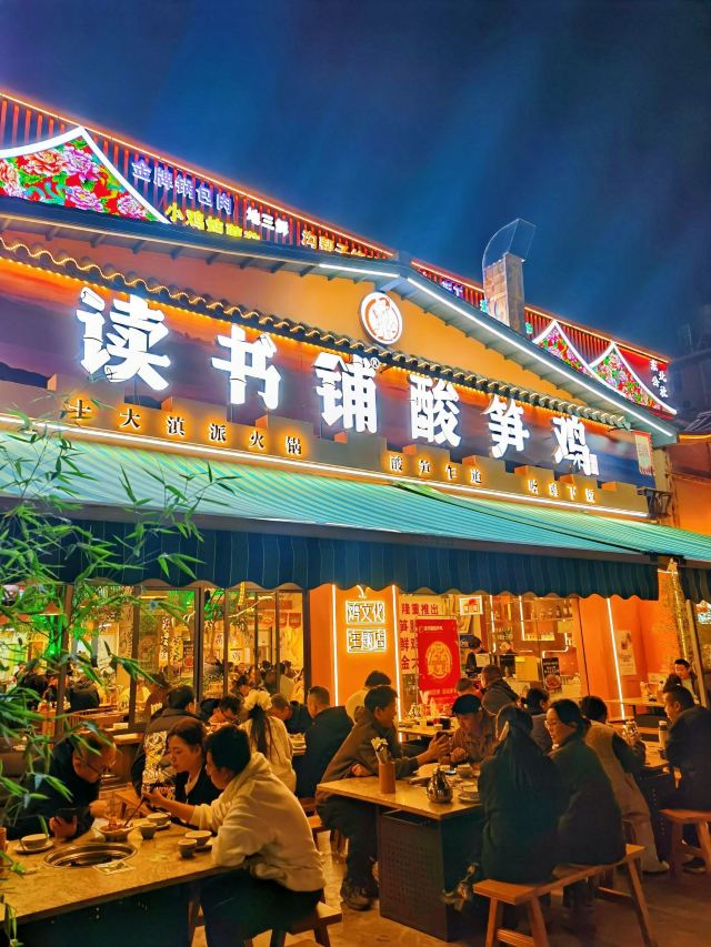 家人们!谁懂呀! 昆明的冬天太舒服啦! 气温暖洋洋的❤️ 这次来昆明玩 野生菌火锅吃啦 昆明小锅米线吃啦 过桥米线也吃啦 总之当地的特色美食都吃啦😍 最让我难忘的还是这家 读书铺酸笋鸡火锅 在昆明有着十多家的连锁店 二十多年的老品牌火锅店 山地放养的走地鸡 哀牢山上的天然竹笋 汤汁浓郁、酸酸辣辣的开胃下饭 酸笋脆脆的、酸酸的、又带着一点甘甜 来昆明玩的朋友可以去尝一尝😍