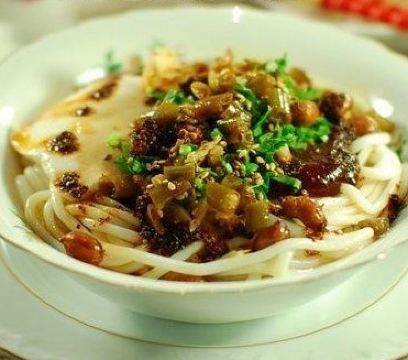 豆花米线属于美食之一。除了豆花和米线,放上甜咸酱油、冬菜(腌菜的一种)、胡椒、酱、香油、麻油、剁细的韭菜、油辣子