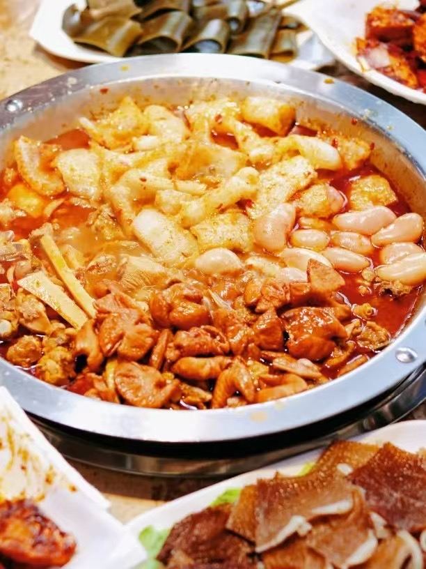 在西山下有一家宝藏餐厅,开了很多年了,生意一直很好。不但好吃还很实惠!强烈推荐宝子们去打卡哦!店铺位于:西山下 苏家村(阳光山水隔壁) 云南人喜欢吃酸的东西,云南的酸分为发酵之酸、食材之酸两种:发酵之酸,比如文山的岜夯鸡、富源的酸汤猪脚、傣族的酸笋、昆明的“读书铺酸笋鸡”;而食材之酸,比如临沧的火腿木瓜鸡、昭通的酸菜红豆汤。 读书铺酸笋鸡,七彩云南的老字号美食。读书铺酸笋鸡在云南是一道家喻户晓的老字号美食,其数十年前诞生于滇西方向(大理、丽江、怒江、腾冲等地的必经之地)的读书铺古驿站,并因此得名,在云南省会昆明拥有多家直营门店,是深受当地群众和全国游客喜爱的绿色美食。其独特的酸笋来自于云南深山里的天然竹林,采取数百年传承的自然发酵工艺腌制,酸笋富含粗纤维,具有“开胃健脾、吸油解腻、促进消化”的功能;区别于川派火锅的重调料,读书铺酸笋鸡采用17味天然香料,具有“刚吃味淡,越煮越香,酸辣开胃,久吃不厌”的特点。在云南数十年的经营里,读书铺酸笋鸡先后获得过“十大滇派火锅”“云岭好火锅”“昆明金牌火锅”“云南最好吃的100家老牌餐厅”等荣誉。 美食离不开美酒,没有美酒的宴席,就是一个没有灵魂的无趣之局。他们家的荞麦酒在搭配上酸笋鸡也是一绝! 有美食有好酒,热情似火的名族敬酒歌的专业高手们专业水平一点也不示弱,在众多的名族敬酒歌里,我们印象最深的不是“管你爱喝不爱喝都要喝”那首,反而是“你不敬我我敬你、你不爱我我爱你,让我们一起干酒醉”态度诚恳而热情,令人感动不已!