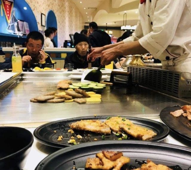 还可以的铁板烧,连锁经营模式。。