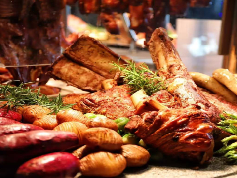 59度低温慢煮牛肉,帕尔玛火腿,小龙虾,三文鱼,黑松露奶油菌菇汤,浓情提拉米苏