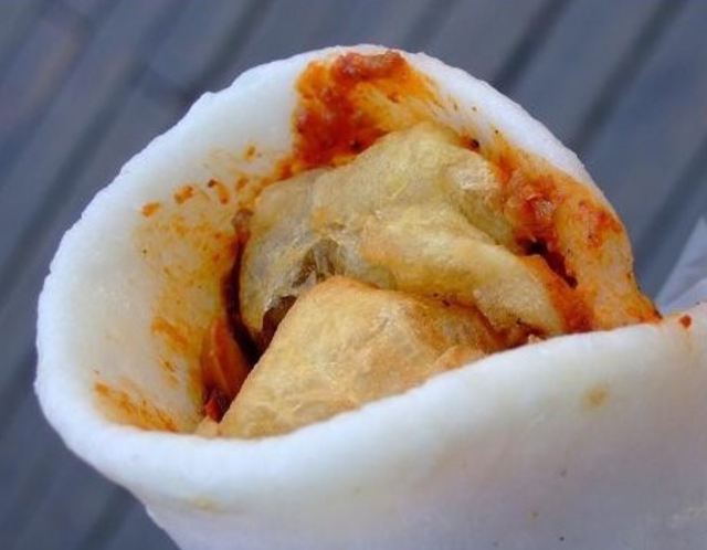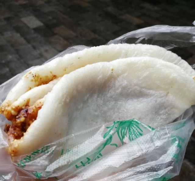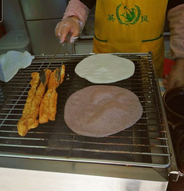 ☞云南八怪之#英凤烧饵# 大米粉做成饼拷热,抹上十几种酱料加油条或是鸡蛋卷起来,吃起来口感劲道,又有油条酥脆。酱里有芝麻,花生,而这些都是钙很好的来源。大米粉属于精致碳水,鸡蛋里有蛋白质。早餐来一个这样的烧饵,那是极好的。