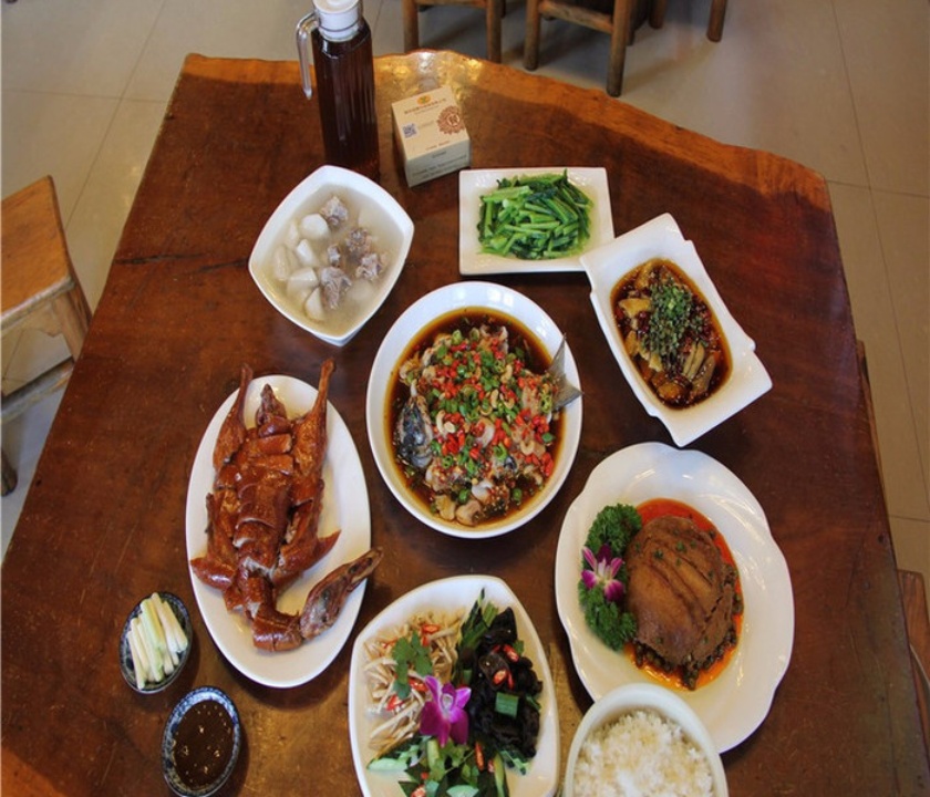 干锅香辣虾,农家小炒肉,麻辣肥肠鱼,苦菜酥红豆,农家片片鱼,铁板粉丝,酸辣鲫鱼,水腌菜拌大烧,酸菜鱼,宜良烤麻鸭