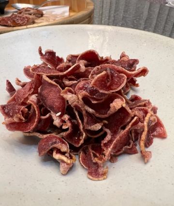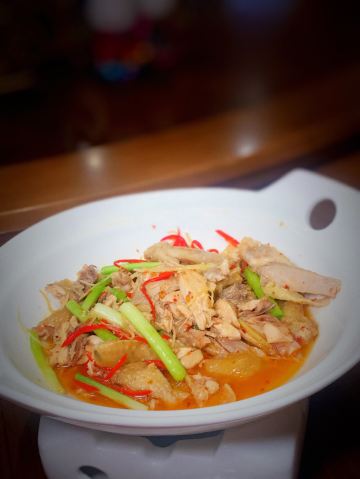 炸鸭胗,酥脆可口,下酒好菜。云南汽锅鸡,汽锅鸡汤很美味,原汁原味。蒜苗炒自制腊肉,不咸不淡正好下饭。榴莲烤乳扇,太好吃了,裹着榴莲一口爆浆。