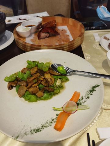 【口味】 来这个酒店开会,就和同事吃点简单的工作餐,炒板兰根第一次吃,味道很特别,粉蒸排骨和四川的不一样,但是口味还不错。 【环境】 【服务】 酒店环境非常好,服务员服务态度很好,颜值也很高。