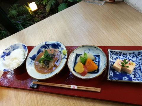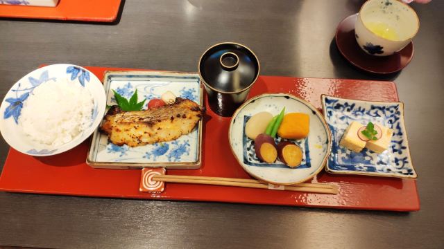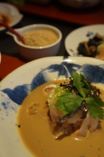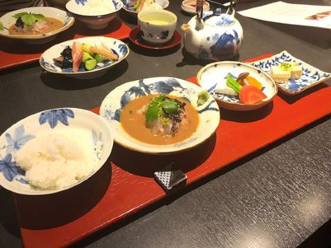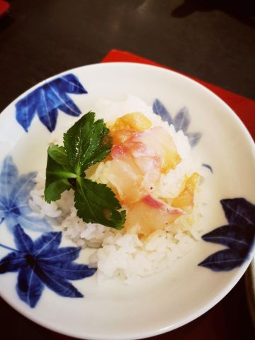 鲷鱼茶泡饭定食,烧鲷鱼,黄豆粉蕨饼,鲷鱼面,鲷鱼西京烧御膳,生鲷鱼片,米糠小菜