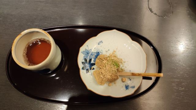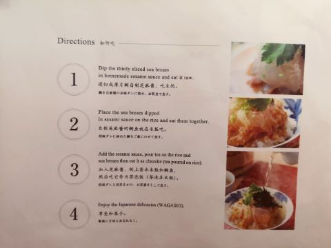 lilysuun岚山风景区范围内的米其林一星餐厅,价钱说真的已经很亲民。平常过来也是超级多人排队,可能去到已经是下午2点多吧,虽然还是要排队不过不用等太久。我们一共点了5份集餐鲷鱼饭绿茶,另外也有加点白玉抹茶雪糕。一份份上来,摆满一桌还是很壮观的,朋友还说一个人点套餐也有上一个饭桶,我们的什么时候可以上。果然上了麻酱生鲷鱼后很快就上一桶饭,其实真的够饱的,因为饭是可以加的。菜牌里面有写到吃法,不过我个人还是比较爱直接蘸酱生吃鲷鱼。下面的酱料如果泡饭吃真的要泡茶,这样会咸淡正好。反正3种吃法都来一遍吧。鲷鱼确实很新鲜,而且都是堆成小山的,份量不算少,最让我们没有想到的是这里的抹茶雪糕味道也不错哦。提醒一句这里的餐牌有中文,店员却是不会中文的,不过大家比划比划还是能沟通的。