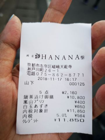 Taisho HANANA来岚山就是为了来品尝这家曾经拿过米其林一星的鲷匠HANANA,来到餐厅也已经是下午2点多,因为过了饭点,排队的人也不多,大约排了40分钟左右。店铺的位置不多,有2层,因为来得比较迟,很多餐食都估清了,只剩一下一款套餐,套餐价格是2160yan,每人一个餐食,约人均150左右。性价比还是挺高的,难怪这么多人来吃,这里可以刷卡消费。这里主要是吃鲷鱼刺身,鲷鱼的套餐都比较精致,而且很新鲜,非常好吃,来岚山建议一定要来尝尝。
