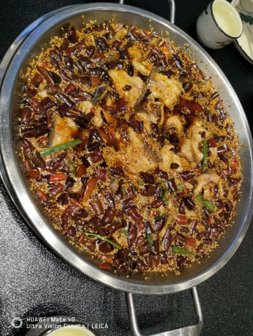 好久没有一家人吃炝锅鱼了,今天来尝尝。不错的口味。我们吃的是黑鱼,是招牌麻辣炝锅鱼,三斤的黑鱼,估计没有多少肚子点菜了,开吃