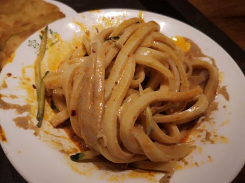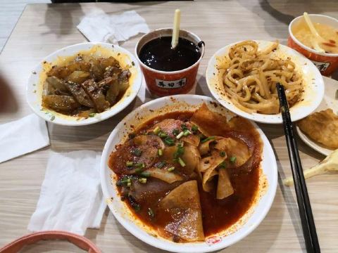 来了兰州怎能不吃再回首,这家离张掖路步行街很近,在旁边的小路里,人蛮多的,点了凉皮、灰豆子、醪糟、饼。凉皮最好吃,灰豆子类似上海的红豆沙,豆子有点硬,醪糟没有在天水吃的好吃,饼蛮有韧劲的,但是因为是油炸的,就尝了一尝。离开的时候想买真空包装的回来,可惜保质期太短,在网上买的话运费都比凉皮贵。还是在上海再找找好吃的凉皮吧。