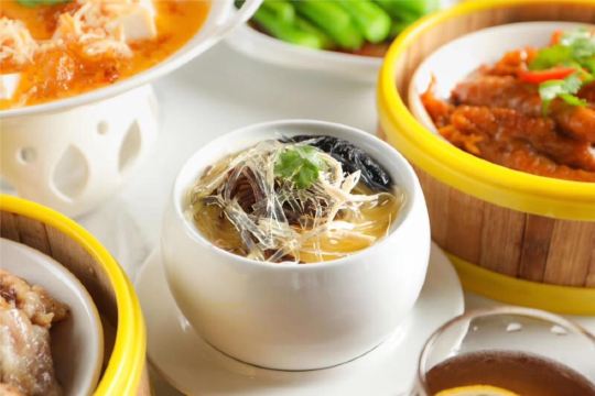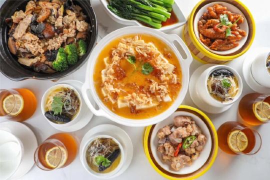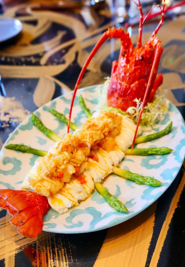 Wok-seared Wagyu beef,Stir-fry Lobster with Sweet and Spicy Sauce and Cashew Nut,Steamed Alaskan King Crab Legs,Black truffle roasted duck,Four Style Vegetable in Szechuan Sauce,Egg and Scallion Fried Rice,港式云吞面,川椒辣酱烧鸭片,猪皮鱼蛋汤,红焖猪手
