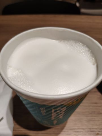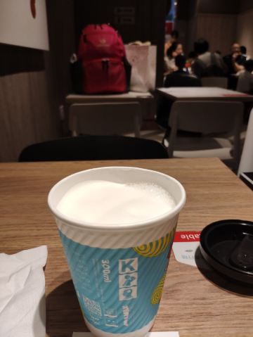 七夕节的晚上在高铁站候车,离高铁出发尚有一小时。坐在车站里实在无聊,就出站在门口的肯德基来喝杯饮料。 [环境]还是很干净的,整个店面不大但是有点温馨。 [服务]挺好的,有个小伙子real耿直。问他什么是萌泡泡牛奶,直接告诉我就是加热的牛奶,只是牛奶用得好一点。 萌泡泡牛奶13元一杯,里面真的打出很多奶泡,奶还比较香。营业时间是早上七点到晚上九点,并且在店里还能听到车站的广播,不会错过乘车。