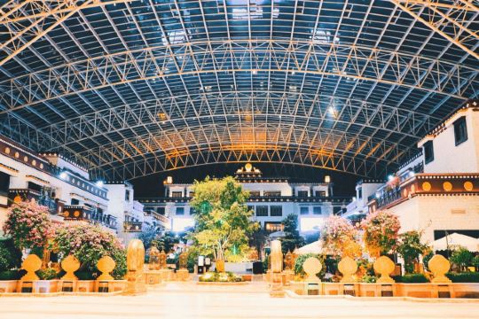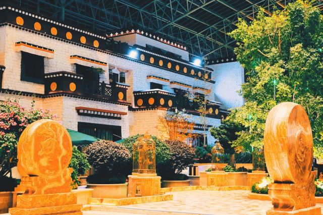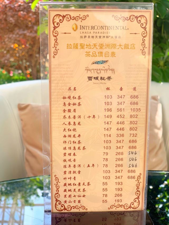 ✨硬件条件 整个酒店远看有点卢浮宫,又有点像埃及金字塔,采用全玻璃的顶部结构,无论在白天的阳光照耀下,还是夜晚由内透出的灯光映射下,整个酒店就像一个艺术品,不愧是西藏最具代表性的高星级酒店之一。 我们订的大床房,房间也真的是够大够宽敞👍🏻。 💰费用 十月份去的,大床房800元/晚,价格也比较合理。 🤵🏻服务 所有的工作人员服务态度都非常的nice,始终保持纯良的微笑和得体的礼仪。 🍵下午茶 酒店有双人下午茶的特价套餐176元。东西不多味道也一般性价比不高。但是当我们看到茶品单点的价格之后,就觉得这个双人套餐很划算了。比如金骏眉196元一杯561元一壶,藏地红景天茶55元一杯193元一壶……😂 💡tips: 🔺酒店提供免费的穿梭巴士:酒店正门口----小昭寺---机场巴士站---大昭寺---酒店正门口,需提前预约。