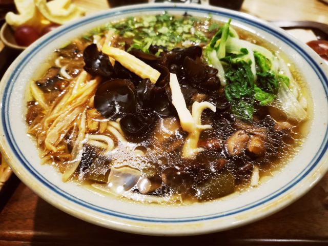 来拉萨玩儿,要好好吃饭!本来想去一家藏民满屋的小店吃一碗6块钱的藏面,奈何同伴忍受不了浓厚且凝固的气味[JoyTears][JoyTears][JoyTears],于是搜索到这家“旬食”,就在 大昭寺附近,门牌不显眼,但是进去很惊喜,食材都是进山寻觅 很有意思的寻食视频,吃了一碗藏地野菌鸡汤面,味道非常鲜美,配了水果,小菜,另点一份牦牛肉,此时12月,有新采摘的天麻,第一次尝蒸着淋了蜂蜜的天麻。 后面想尝一小口粉的味道,店家很愉快答应了,没想到端上的又是一大碗,哈哈哈感觉吃了两份。 环境也是非常的舒服,同伴因为高反前一天没睡好,饱食之后居然在店里趴着睡着了,真的是很闲适的一家店!