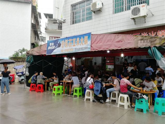 这不止是网红店那么简单,来晚了基本要等位,甚至还有可能因锅底售完而吃不上。食客除了来旅游的,还有很多本地人模样。虽然位于内街,但从美食街牌坊往县城中心方向走过去也就不到十分钟。今年7月去的老店铺面条件有些简陋,但对面的店正在装修,应该很快能启用了,到时环境会舒服很多,不知价格会不会有一定的上涨。老板不太像当地人,服务意识非常好,甚至有点过分了,亲力亲为跑上跑下,热情介绍菜式和吃法,感觉是不是有种强迫症啊,要把所有人给服务周到,太累了吧。浓汤煮红豆,是这里锅底的特色,汤不会太油腻,刚上时可喝。7元一位含茶位米饭蔬菜任吃,消费真的很实惠,比起美食街的店划算很多。