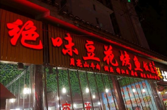 月亮山饭庄绝味豆花烤鱼位于贵州省黔南布依族苗族自治州荔波县民生路邓恩铭广场美食街樟江夜食牌坊内20米右边。我是和先生自驾旅游到荔波县,当天晚上想去品尝一下当地美食,看到这家老板人非常热情,店内也比较干净整洁,于是选择在此就餐。该店价格也挺公道,菜品份量也非常足,烤鱼味道非常入味,豆花也特别好吃,素炒水蕨菜,水蕨菜清脆爽口,不愧是荔波特色,推荐!