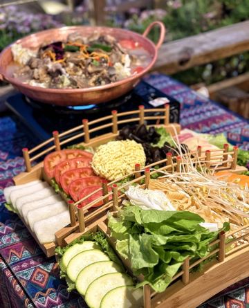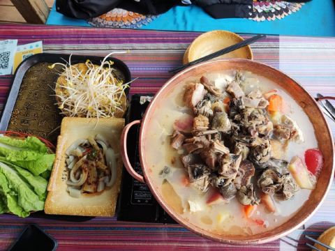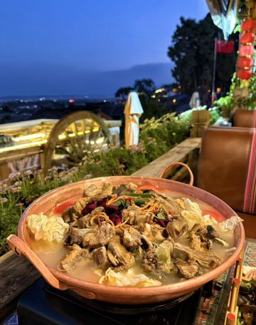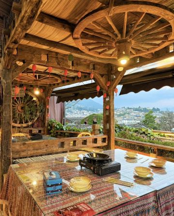 谁敢想象边吃火锅边俯瞰整个丽江古城的美景能有多绝啊啊!! 吃到特色火锅的同时还能收获人生大片 这个特色云南腊排骨土鸡铜锅一定要吃! 土鸡熬煮锅的汤底特别的鲜美 完全不腥~吃完腊排骨和土鸡记得煮蔬菜/!! 这个汤底真的烫什么青菜都好清甜好好吃!!餐厅的环境和背景都很容易出大片! 而且只有吃腊排骨火锅就有专业摄影师免费拍照底片也送 真的两全其美面固 建议大家日落时分去 傍着黄昏会更惬意~太阳下山后就是更宁静的氛围感~~ 店里还有很多其他的打卡机位 像天空之城~这种好吃又好看的餐厅有人能忍住不来打卡吗