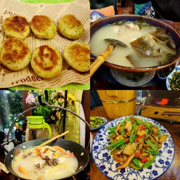 密制米线,香辣鱼,吊锅三菇,包浆豆腐,油炸薄荷排骨,黑糖豆花,铜锅火腿洋芋焖饭,小炒黄牛肉,青稞小米饼,荷包蛋五花肉炒青椒,水煮鱼,绿豆青菜排骨汤,吊锅豆角茄子,咖啡,萝卜排骨汤,湖南腊肉炒蒜苗,炝莴笋,米线