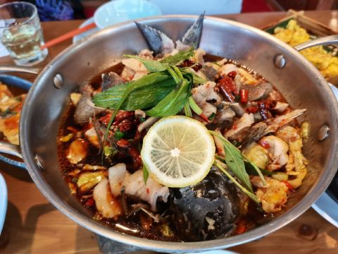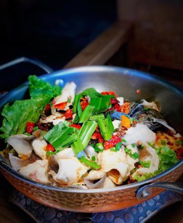 秘制雪山鱼,云南汽锅鸡,自磨泉水豆腐,山珍菌香炒饭,葱油水性杨花,手工荞麦饼,泡鲁达,傣家包烧菌菇,黑松露,香格里拉牛肉铜火锅