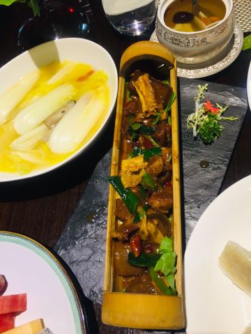 D了个Y食在这里# 鉴于下午茶结束的时候有点晚了 而后在酒店里又瞎晃悠了一圈 酷热难耐 回房冲了个凉就歇着了 等再感到饿的时候 想要出来吃点东西 已然已经是八点过后的事情了 住在巴厘岛翼近沙滩一侧 去餐厅感觉要走好远 到餐厅的时候里面只坐了一桌人 灯光比较灰暗 整体简约中国风 中规中矩 点了一份炒饭 一份鱼肚汤 也算是简单的一人餐 |牛肉炒饭^色泽金黄 香气扑鼻 满满一大盘 我不是一个爱吃炒饭的人 点的时候是因为图片好看 哈哈 上来的时候 还因为跟图上的不一样而有些小失望 但是只第一口 我真有被惊艳到 简直太好吃了吧 饭粒饱满 飘香四溢 爱了爱了 |鱼肚羹^汤底醇厚 色泽浓郁 口感绵密 内容丰富 是一碗好汤该有的样子