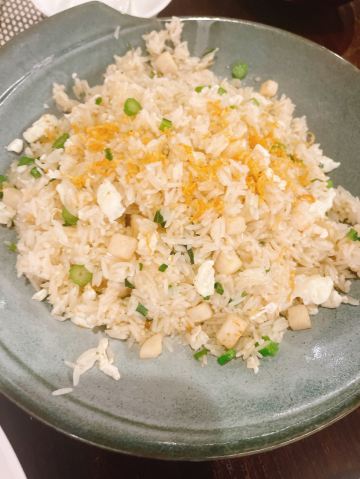 食在这里# 鉴于下午茶结束的时候有点晚了 而后在酒店里又瞎晃悠了一圈 酷热难耐 回房冲了个凉就歇着了 等再感到饿的时候 想要出来吃点东西 已然已经是八点过后的事情了 住在巴厘岛翼近沙滩一侧 去餐厅感觉要走好远 到餐厅的时候里面只坐了一桌人 灯光比较灰暗 整体简约中国风 中规中矩 点了一份炒饭 一份鱼肚汤 也算是简单的一人餐 |牛肉炒饭^色泽金黄 香气扑鼻 满满一大盘 我不是一个爱吃炒饭的人 点的时候是因为图片好看 哈哈 上来的时候 还因为跟图上的不一样而有些小失望 但是只第一口 我真有被惊艳到 简直太好吃了吧 饭粒饱满 飘香四溢 爱了爱了 |鱼肚羹^汤底醇厚 色泽浓郁 口感绵密 内容丰富 是一碗好汤该有的样子