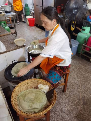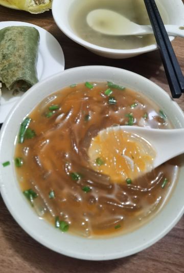 去爬城墙,在门口随便找了家早餐店。 没想到还是开了多年的老店,全是本地人在吃,环境一般。 品种很多,先拿齐,然后喊老板来看,结账。 味道还不错,关键是价格便宜,2元一碗的豆面汤,荤汤底,汤里还有不少虾皮。 我们4个人,人均10元吃到撑,难怪各个年龄段的人,络绎不绝。