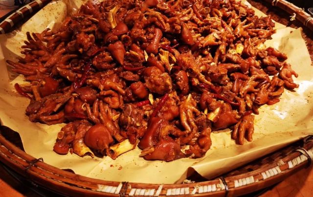盐菜扣肉,茴香茶,糖饺子,卤鸡爪,湖藕烧排骨,粉皮羊肉,青椒炒虾米,蒸五花肉,胡萝卜丝炒腊肠,炒下饭菜,米汤老豆角,韭菜煎小洋芋,墨鱼饭豆炖猪肚,酸菜炒小笋