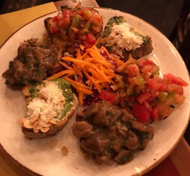 由于看到了这家餐厅的好评,所以我们来了这里。我们两个人都点了混合意式烤面包,非常美味,份量也很足。所有的意大利面都是正宗的纯意大利面,里面还有西红柿和肉丸子,还有奶酪和胡椒。我有点失望,因为里面的酱汁很少,而且只有磨碎的胡椒粉,而不是蔬菜,因为这不是我想象中的样子,但它仍然很好吃。葡萄酒很不错,服务很快捷。