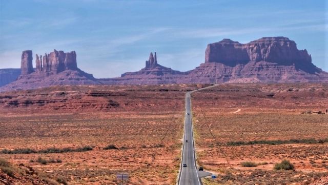 chenweiwen纪念碑谷的全称是纪念碑谷纳瓦霍部落公园,位于 亚利桑那州 与 犹他州 交界的纳瓦伙族印第安人保留地里,它是 美国 十大迷人沙漠之一,风景雄伟,这片土地多次被作为好来坞西部片的外景和电视广告的背景,较有名的则是《阿甘正传》。这里特殊地貌的成因是远古落基山的堆积物沉积于此,并转变成沙岩,由于地层压力不断挤压,导致地表断裂隆起,加上风雨的侵蚀,就变成了如今的古城遗迹般的景致。 进入纪念碑谷的道路都有柏油铺设。公园内整个景区没有铺设行车道,原生态的道路崎岖颠簸 ,汽车开过扬起阵阵浮尘,我们把车窗关得严实,车旁不时有景区的敞篷观光卡车载着许多鬼佬游客呼啸而过 ,不同地域不同文化背景 的人旅行观光的方式也不甚相同。