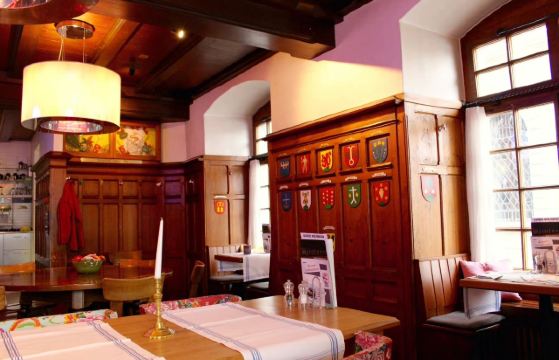 这家本地风味餐厅紧邻罗伊斯河岸,坐落在一栋始于1576年的华丽楼房内,原属市面包粮食同业公会。楼房外墙上华丽的壁画是老城一景,大概是城里尺幅最大的了。在这里不仅可以吃到一流的瑞士奶酪火锅、奶油蘑菇小牛肉酥皮盒(Chögelipastete)等当地特色和德语地区的菜肴,还能从露台观赏到卡佩尔廊桥的全景。抢手的阳台位子预约才有。