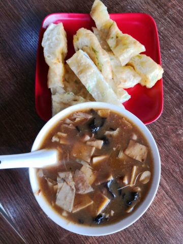来洛阳看牡丹花,顺便找找洛阳城的美食。不求多高大上,一定是最正宗的。呵呵,看完牡丹出来,王城公园附近,找到了这家胡辣汤。相当正宗,味道醇厚鲜美,配上一份饼,吃得美美的。