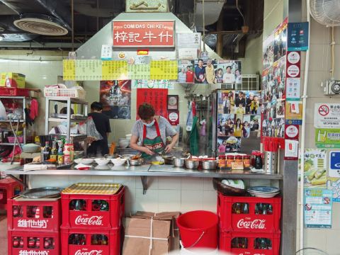 开业近70年的梓记牛什深受澳门当地人喜爱,百老汇美食街也特地请其入驻,店家采用市场直送新鲜牛什,处理工序也十分仔细讲究,汤底每天新煮,选用牛骨、牛筋和牛肺熬制3个多小时,然后根据牛什的不同部位,按照次序分别加入进行卤煮。招牌菜是食客难以在其他牛什店品尝到的牛喉咙、牛心椗及新鲜牛草肚。