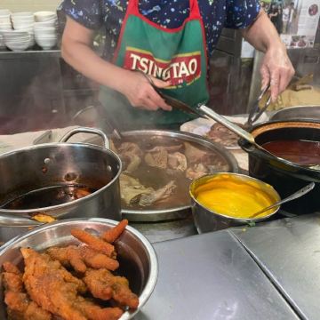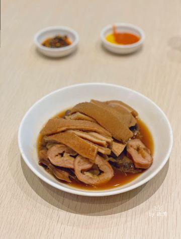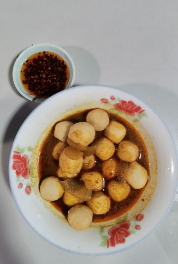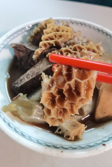 专门来打卡吃牛杂的。这牛杂小铺隐藏在街市里。在营地街市的3楼,其实也就是我们说的4楼,因为这里的街市是从地下算起。可以坐电梯直达。街市的3楼主要都是熟食中心,有空调,有位置可以舒舒服服坐着来吃。美食大师蔡澜也来过。 要了一碗净牛杂萝卜和咖喱鱼蛋,牛杂焖得很软,很入味。咖喱鱼蛋就普普通通。朋友超爱这里自制的辣椒酱,还买了一瓶带回家。