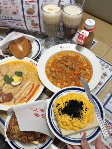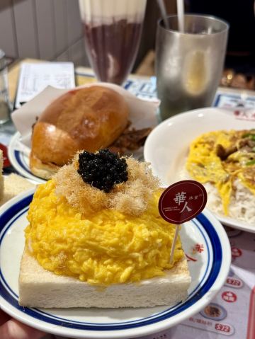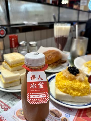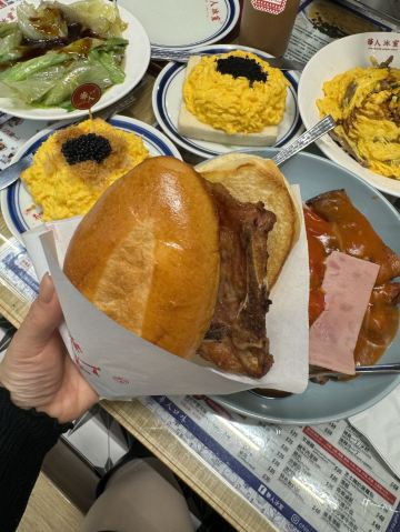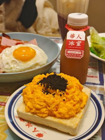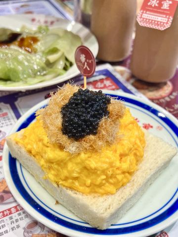 救命!澳门华人冰室简直是美食天堂,来澳门旅游的宝子闭眼冲!刚端上桌的华人奶茶(樽仔),奖牌超亮眼,入口丝滑,清爽解腻,无怪乎明星追捧。鱼子酱马介休炒蛋多士,满满都是料,一口就被圈粉。必食榜猪扒包,猪扒鲜嫩多汁,面包酥软有嚼劲,肉香四溢,好吃到跺脚。这家宝藏冰室,必须N刷!
