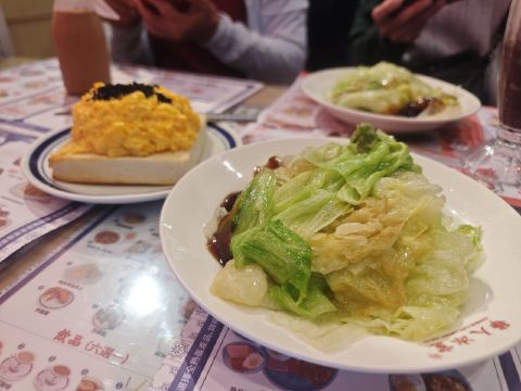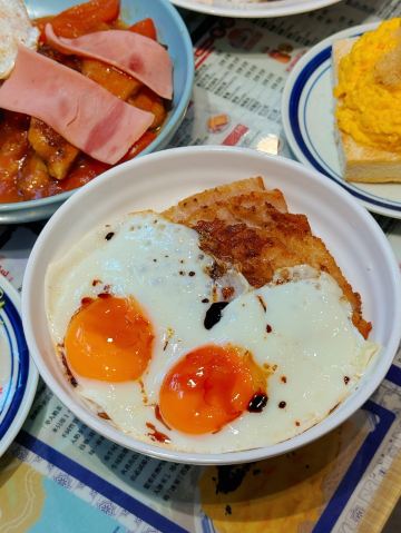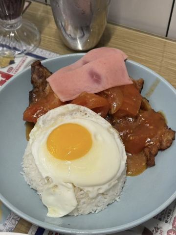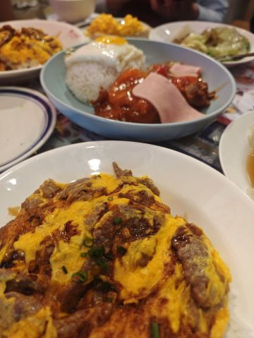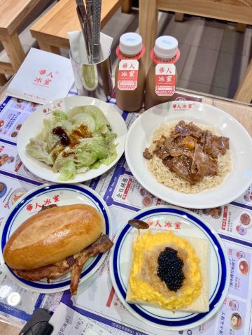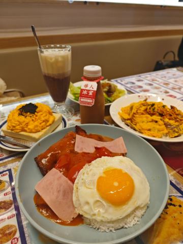 双人套餐真是物超所值!主食选了滑蛋牛肉饭和沙丹猪扒饭,滑蛋的火候掌握得恰到好处,蛋液裹着鲜嫩的牛肉片,入口丝滑又带点奶香,米饭粒粒分明,酱汁浓郁却不腻;沙丹猪扒饭的猪扒外皮炸得金黄酥脆,内里肉质紧实多汁,搭配酸甜的番茄酱和煎蛋,口感层次丰富。饮品中,华人奶茶茶香醇厚,奶味柔和,甜度刚刚好;红豆冰的红豆煮得绵密软糯,碎冰混合椰香,清凉解暑。小食更是惊喜连连,黑松露炒蛋多士的松露香气扑鼻,炒蛋滑嫩如布丁,搭配酥脆的烤多士,一口下去幸福感爆棚;蚝油生菜清脆爽口,酱汁咸鲜提味,完美平衡了主菜的厚重感。整套菜品搭配用心,分量足够两人吃到满足,人均不到200澳门元,性价比超高,绝对值得二刷!