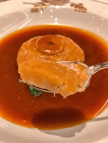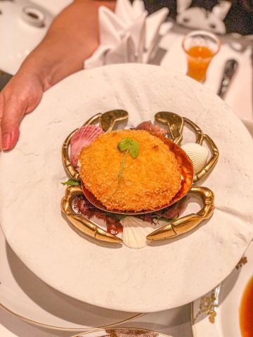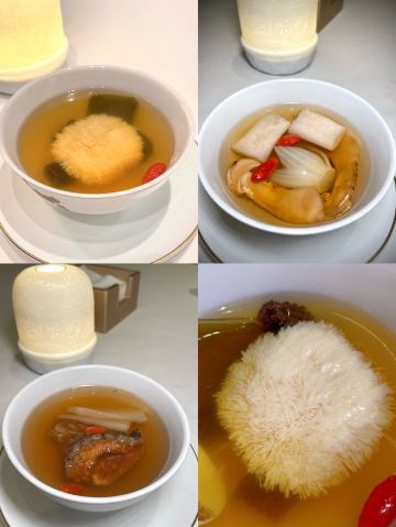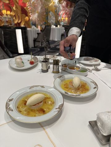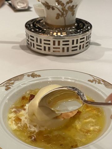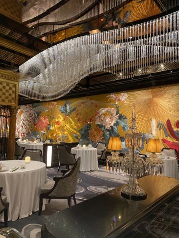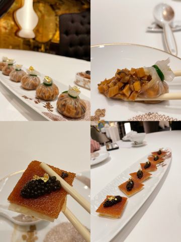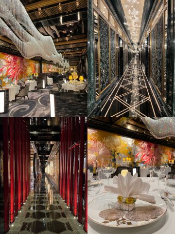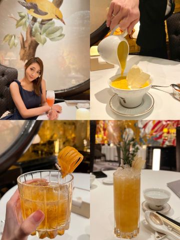 澳門🇲🇴莎莎 Sasa Choi从门口已经见到充满着繁花绿叶的接待处, 这还有五间充满诗意、宫廷园林主题的包厢, 这次3位所以在大厅享用🍽~ 有着长达 35 米的特制苏州丝绣贯穿着整个大厅, 由香港名设计师陈幼坚设计,配搭中西合璧元素, 这里每一个布景都我惊叹真的太美了👏🏻 彷佛到了华丽殿堂。另外还有一间独特隐藏了ㄧ间小酒吧,称之《李白吧》以270度环幕LED墙做背景, 播放是艺术家杨泳梁所创作的超现实影片港澳繁华夜景感觉到了另ㄧ个空间,如果跟朋友小酌ㄧ杯会有专门的调酒师过来的哦,不过当天用餐结束已经晚了 都准备关门还没有机会体验到😌 只够时间拍照 总结: 食物出品不错 但调酒三杯都不是我喜欢喝的类型 有待进步~而且当天点ㄧ杯掌上明珠,ㄧ喝都撒在身上、吓ㄧ跳因为珠珠全掉地上⋯不太理解怎么品尝⋯ 也不是加入酒中似乎怎麼喝都會掉下 😬 好險不是穿白色😂 不过后来调酒师经理都有来, 解释是这次花瓣偏小,过往没有客人遇过😥 以后会注意做调整,服务态度暂时还是满分的😌 好彩食物好味 算了~环境已让我心情愉悦 还有好多菜想试 ~下次再来吧😌 餐前小食: 薄荷玉米芦荟汁 开胃饮品 蓝莓酱包住准山,❤️鸡肉酥酥脆好吃 ❤️海瞻酱菌皇焗响螺 💰$198 必点 口感绵密与配料完美融合 每啖都是幸福感 ❤️蜂蜜炆牛小排 💰$188(位) 肉质酥软入口即溶、蜜汁甘香回甜 ❤️海鲜鱼滑豆腐煲 💰$228 配料口感滑嫩 汤汁鲜甜 必点! ❤️菊花豆腐炖羊肚菌 💰 $188 即细致刀工、豆腐滑嫩值得ㄧ试👏🏻 ❤️天麻炖斑鱼汤 💰$168 鲜美肉嫩 味道不错~ ❤️鱼子酱脆皮烧乳猪6件 💰$488 外皮酥脆油香 鱼子酱完美融合 ❤️御花园’杨枝甘露 💰$88 杨枝甘露配上姜片还有雪糕微微甜, 配上姜片微薄脆口搭配很完美👏🏻 ⭕️松茸菌菇石橹球 💰$128 ⭕️松茸炖竹笙汤 💰$128 比较清淡没有太大特出~ ⭕️油鸡枞菌露笋炒东星斑 💰$368 鱼肉弹实但滑嫩些更完美 摆盘不够细致 ❤️游园地 💰$78(无酒精鸡尾饮料) ❌掌上明珠 💰$138 ⭕️诗已至此 💰$138 📍地址:上葡京综合渡假村3楼 上葡京停车场南翼A入电梯三楼 ⏰营业时间为中午12时至下午3时, 以及下午6时至晚上10时30分 (逢星期二休息)