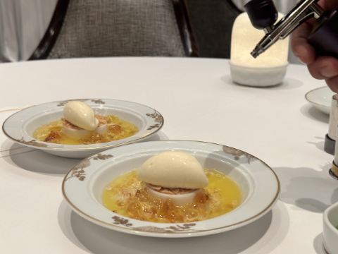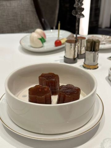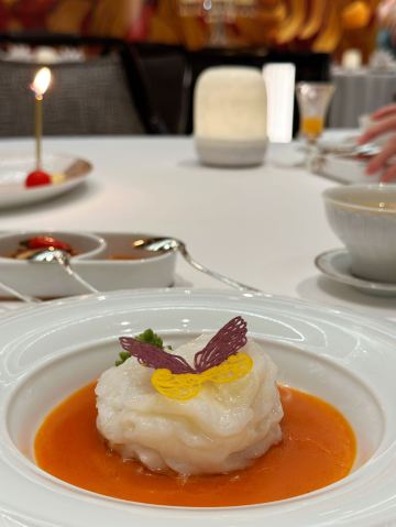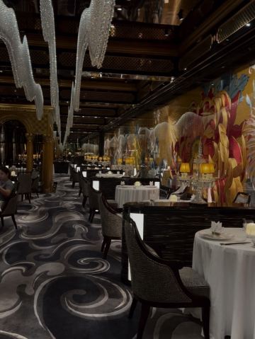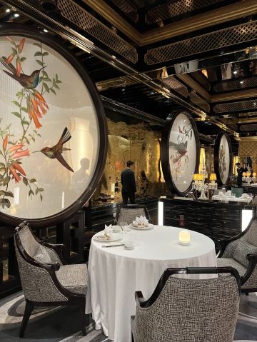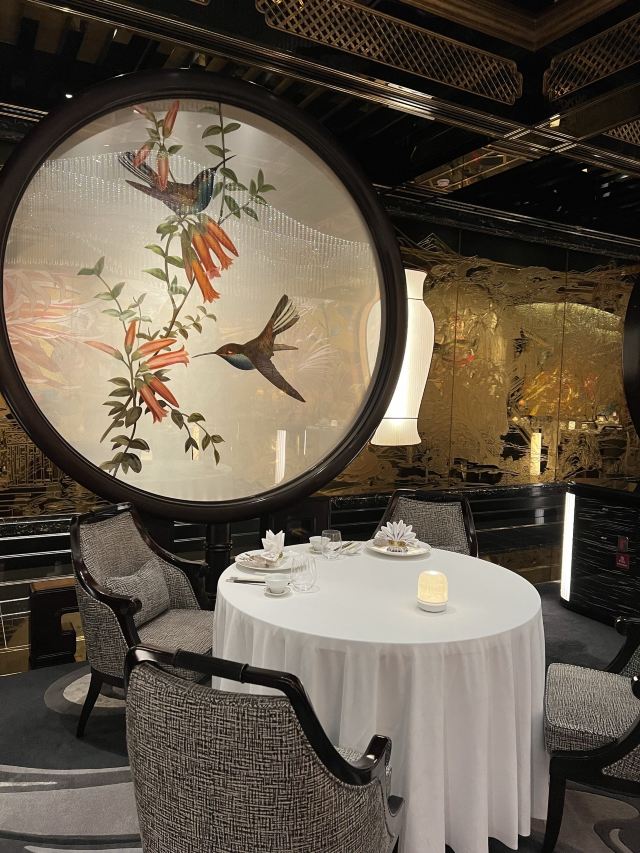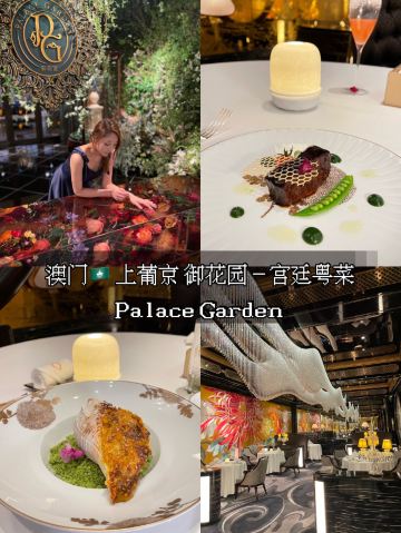 Palace Garden装修一绝,高贵典雅,精致的苏绣真是赏心悦目,这顿饭值了值了,一边享受美味一边被艺术感染熏陶。 餐品出品也相当优秀,点的lunch set 全程无雷区, 特别喜欢黑豚叉烧,烤的恰到好处, 部位也选得很好,香香嫩嫩的。 牡丹虎虾球也很惊艳,口感Q弹,完美保留虾的鲜味,摆盘也相当精致出片。 甜品是茅台菊花杏仁冻,是真的茅台雾化在甜品上面,香气满满, 杏仁冻入口即化,好吃😋 如果人多建议订包房, 低消基本就是座位数点套餐的价格,非常惊艳, 每个房间都不一样。 问了一下餐单会不定时更新,期待二刷~ 📍上葡京三楼 御花园