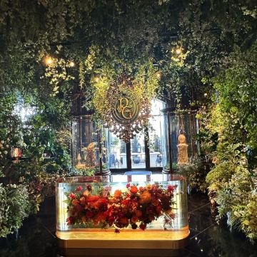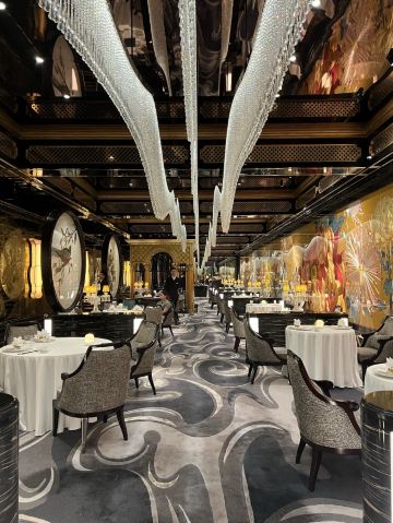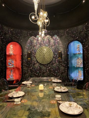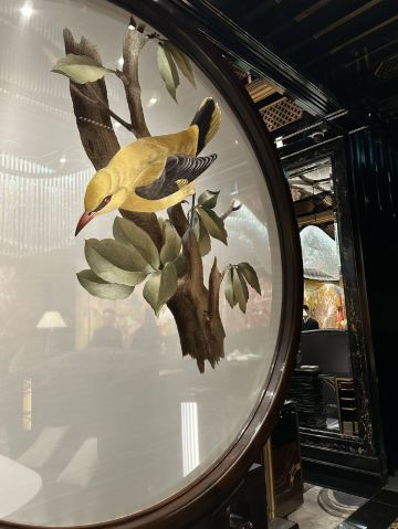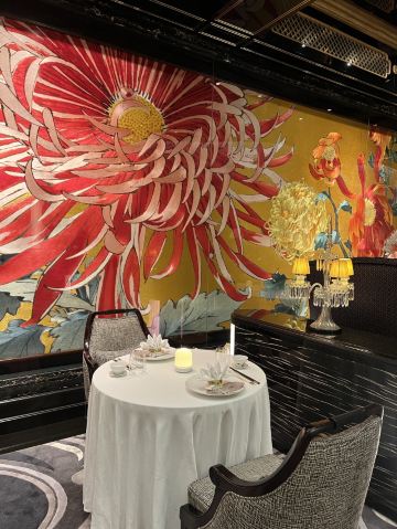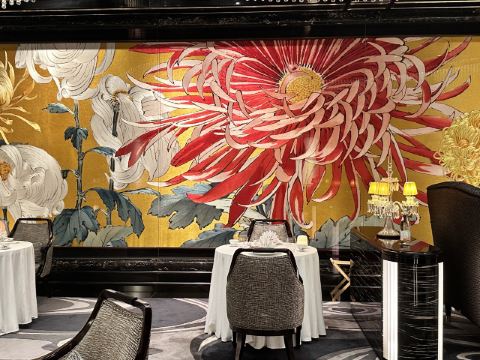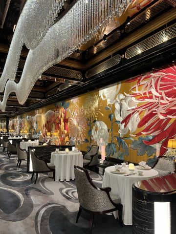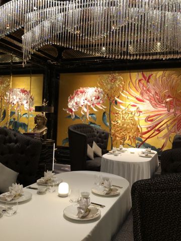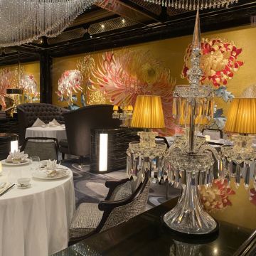 餐厅融汇中西元素,云集皇家庭园的华丽精粹,绽放欧亚贸易交流迸发出的东情西韵。设计灵感来自宫廷园林,35米长的菊花苏绣以及长廊上的双面苏绣团扇屏风展示出了深厚的东方韵味。在雍容华贵的装潢和诚挚周到的服务下,细味上乘食材入馔的时令高端粤菜,以及多款特调精酿。