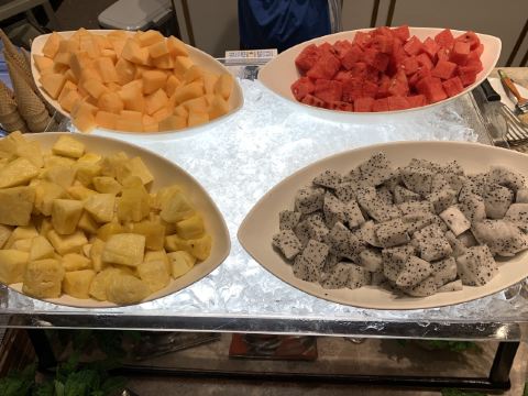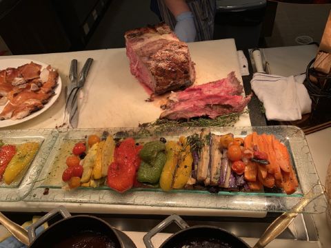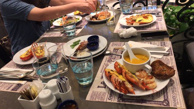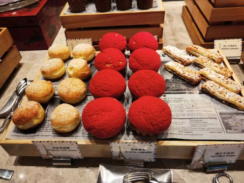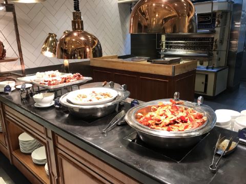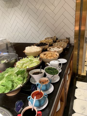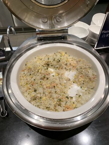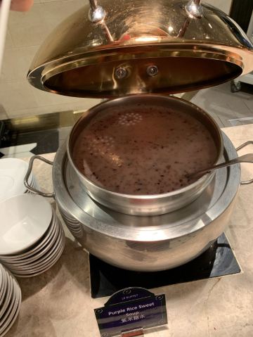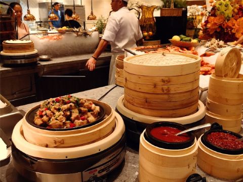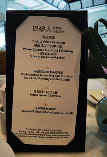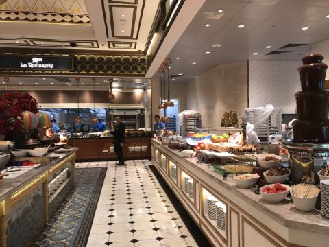 Le Buffet巴黎人的自助餐,这盘住在巴黎人连着吃了两天,有点撑,不适合我家的小胃口。 自助餐是7:00-13:00,听服务生说晚了要排队,我们8点去的,人不多,9点过陆续人多了,但也没排队。 餐的品种不是很多,但品质还不错,补货也及时,不会空盘。有三款是落座后点单,波龙鸡汤和扇贝,点的最多的就是波龙,扇贝的粉丝老的很。 他家的手工面和生滚粥不错,果然还是中式食品适合中国胃。印度菜的咖喱也是有滋有味,还吃到了班尼迪克蛋,不错耶。甜品看着不错,可惜小胃吃不下。